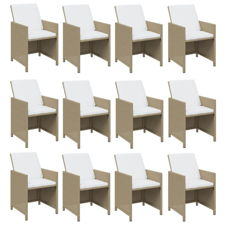 13 Piece Garden Dining Set with Cushions Poly Rattan Beige