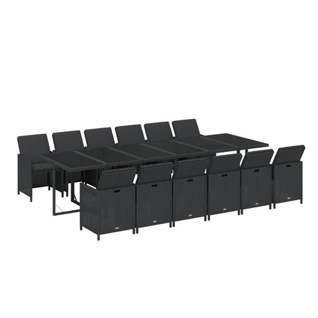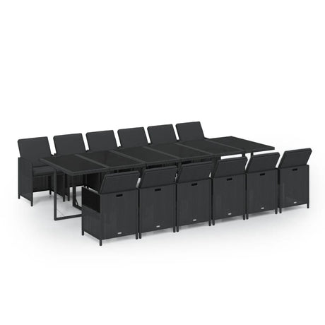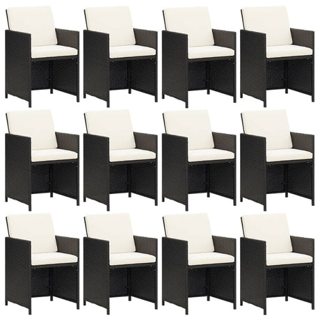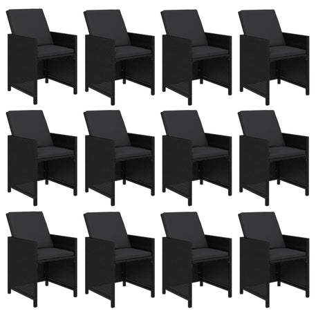 13 Piece Garden Dining Set with Cushions Poly Rattan Black
