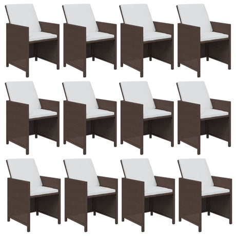 13 Piece Garden Dining Set with Cushions Poly Rattan Brown