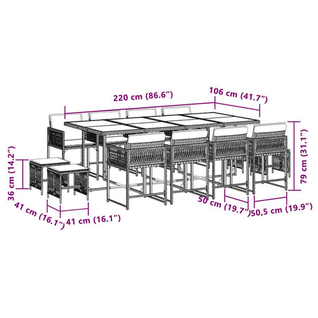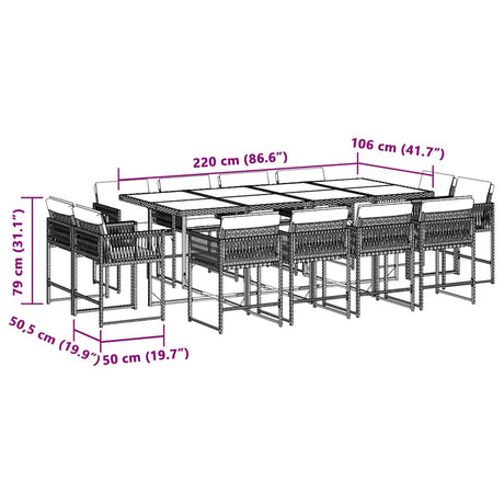 13 Piece Garden Dining Set with Cushions Poly Rattan Grey