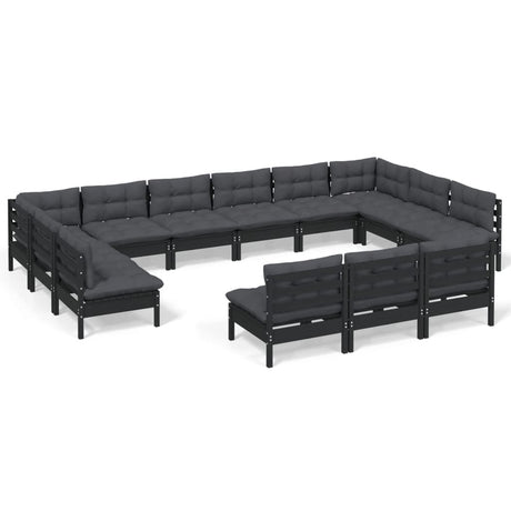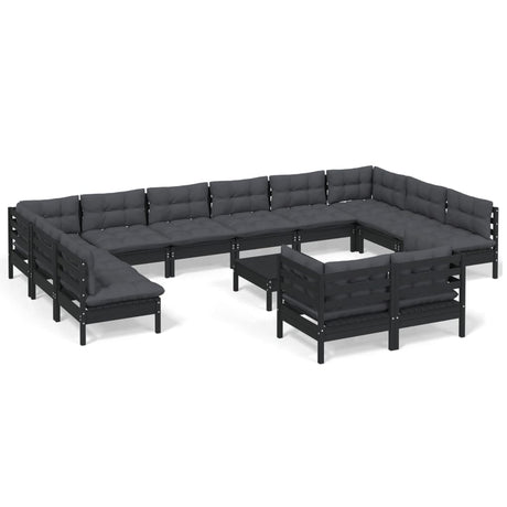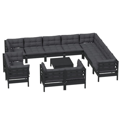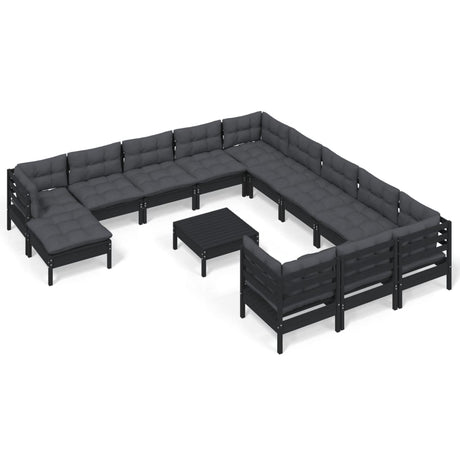 13 Piece Garden Lounge Set with Cushions Black Pinewood