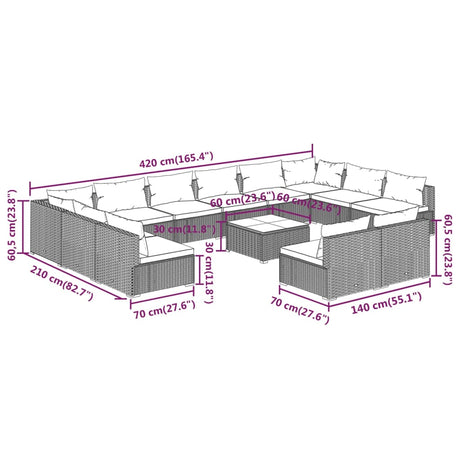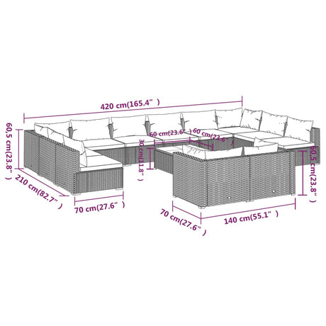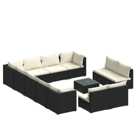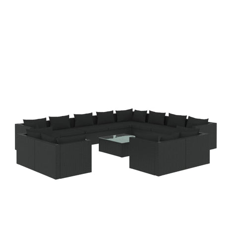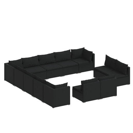 13 Piece Garden Lounge Set with Cushions Black Poly Rattan