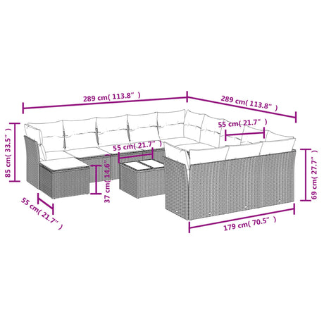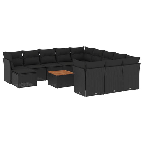 13 Piece Garden Sofa Set with Cushions Black Poly Rattan