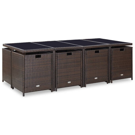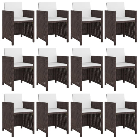 13 Piece Outdoor Dining Set with Cushions Poly Rattan Brown