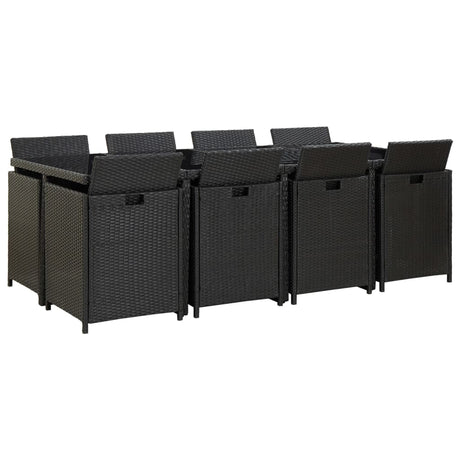 13 Piece Outdoor Dining Set with Cushions Poly Rattan Black