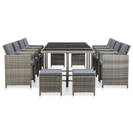 13 Piece Outdoor Dining Set with Cushions Poly Rattan Grey