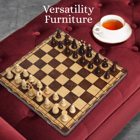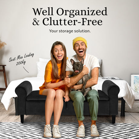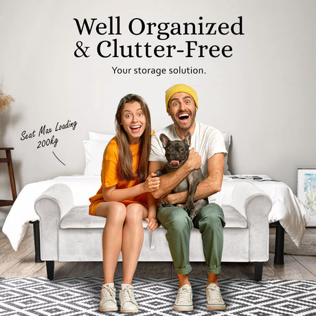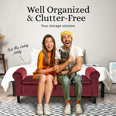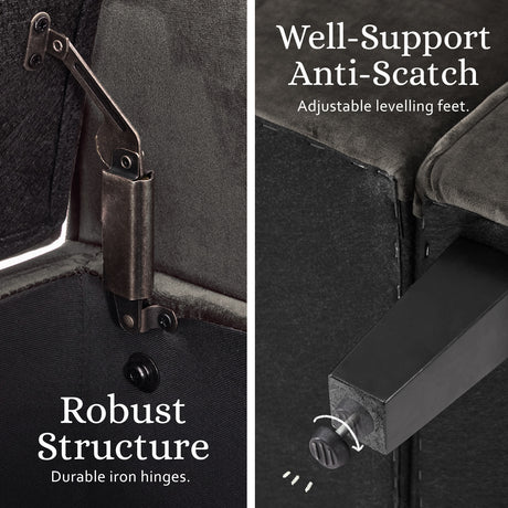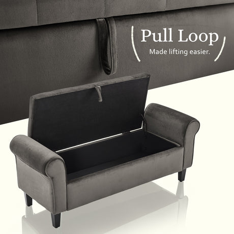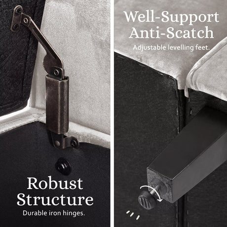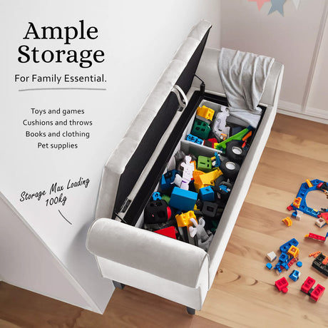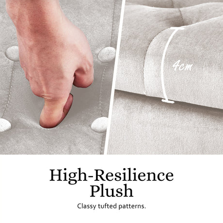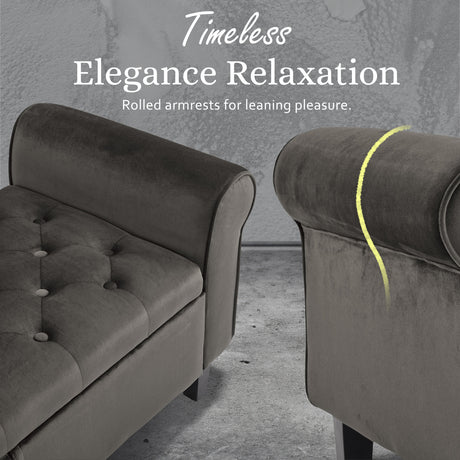 132cm Storage Ottoman Arm Velvet - BEIGE