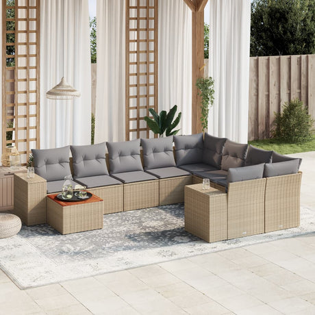 10 Piece Garden Sofa Set with Cushions Beige Poly Rattan