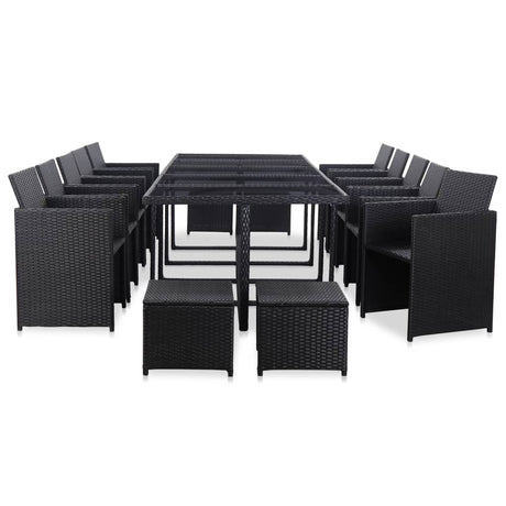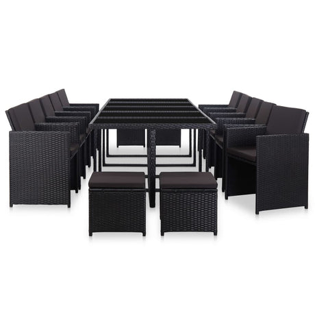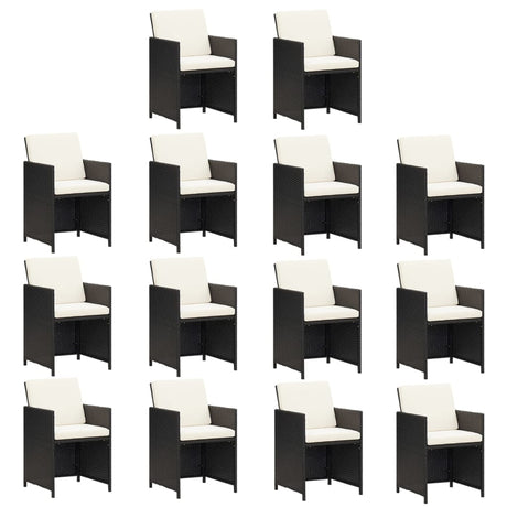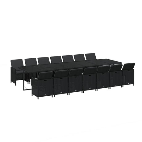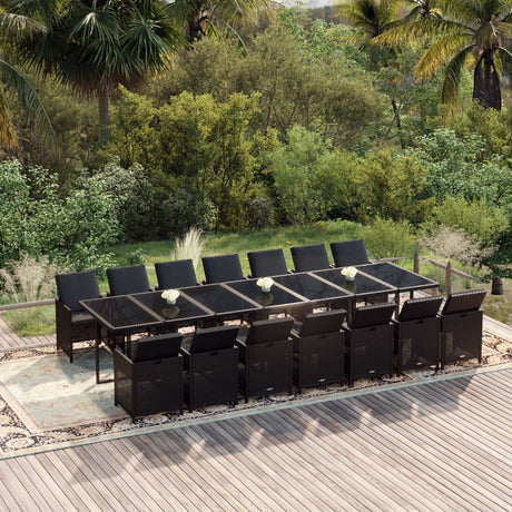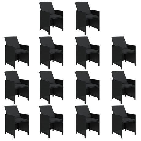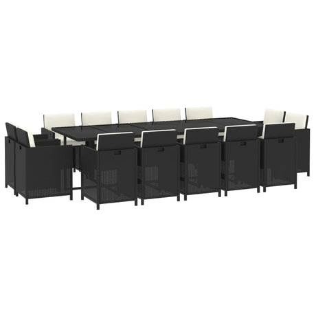 15 Piece Garden Dining Set with Cushions Poly Rattan Black