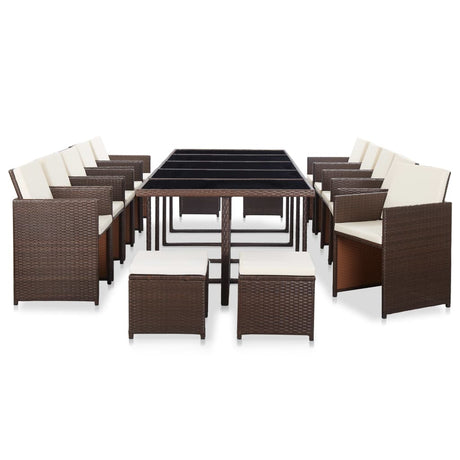15 Piece Outdoor Dining Set with Cushions Poly Rattan Brown