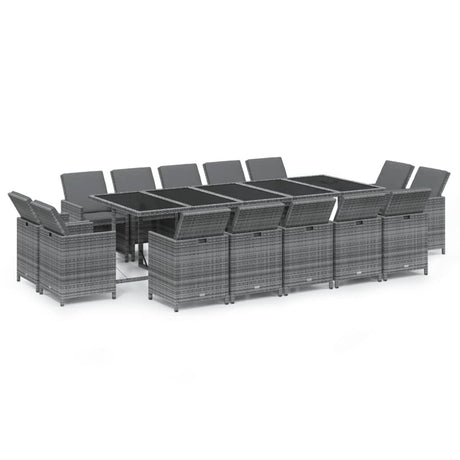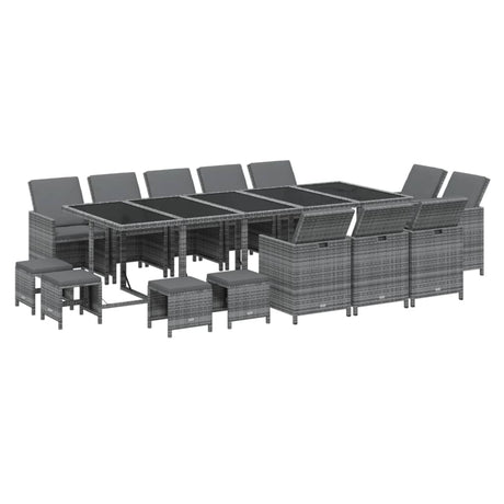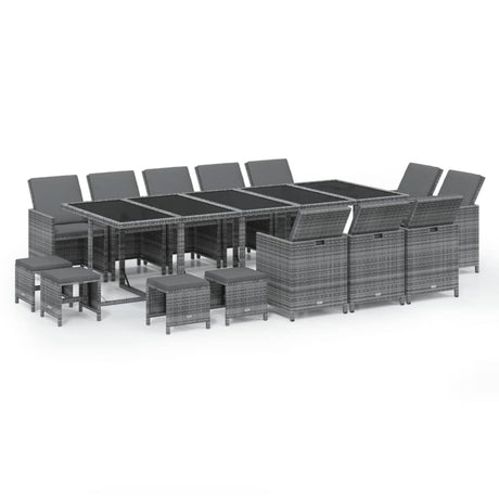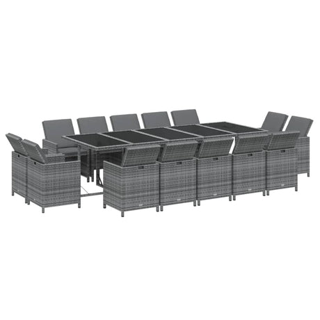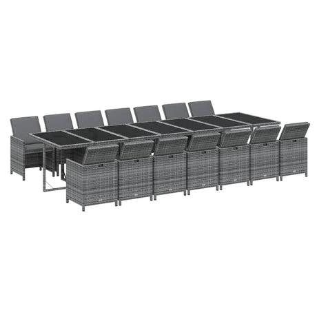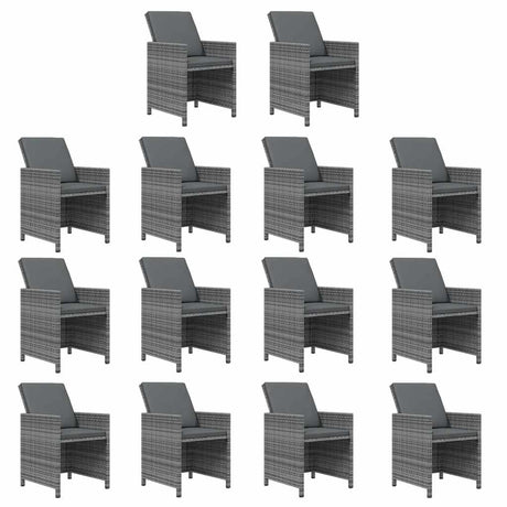 15 Piece Garden Dining Set with Cushions Poly Rattan Grey