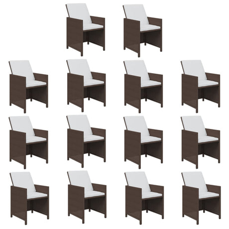 15 Piece Garden Dining Set with Cushions Poly Rattan Brown
