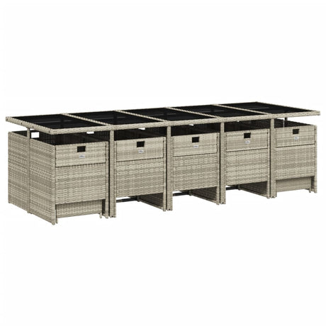 15 Piece Garden Dining Set with Cushions Light Grey Poly Rattan