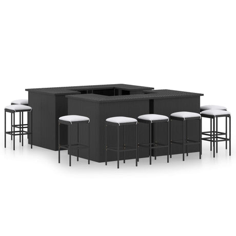 16 Piece Garden Bar Set with Cushions Poly Rattan Black