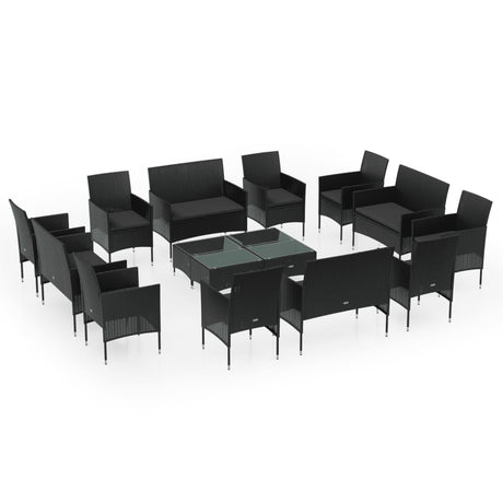 16 Piece Garden Lounge Set with Cushions Poly Rattan Black