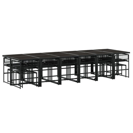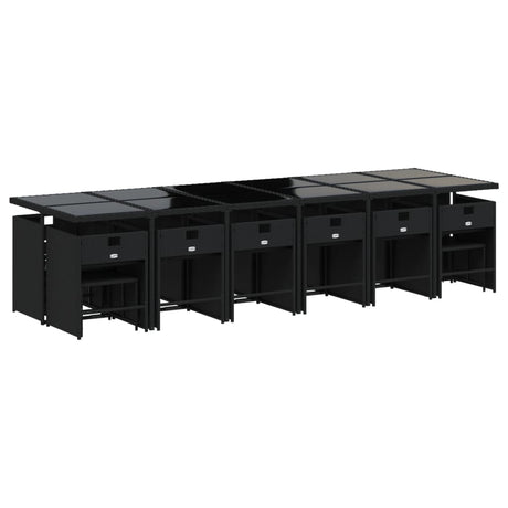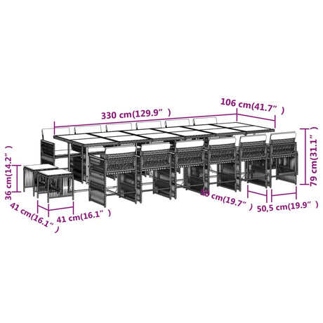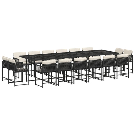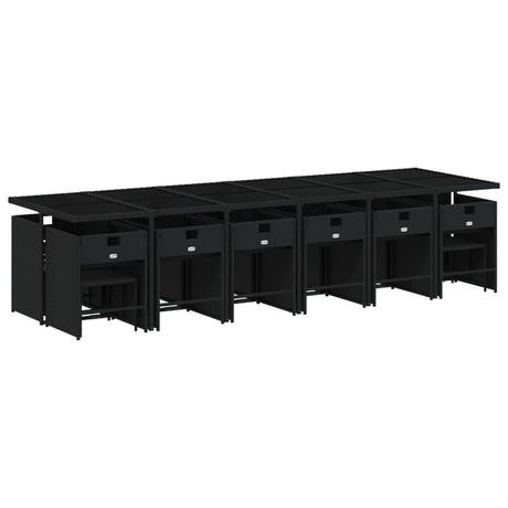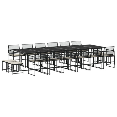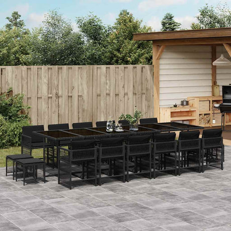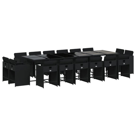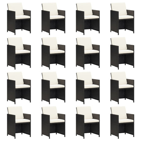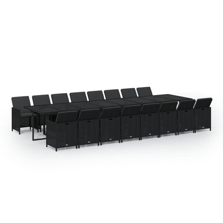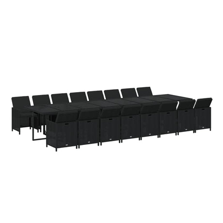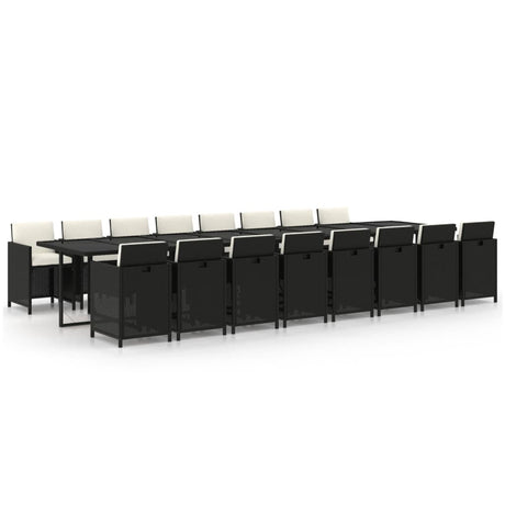 17 Piece Garden Dining Set with Cushions Black Poly Rattan