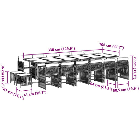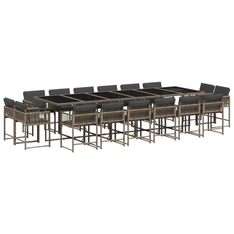 17 Piece Garden Dining Set with Cushions Grey Poly Rattan