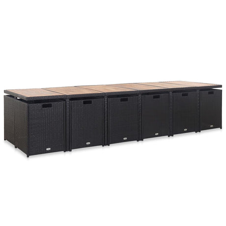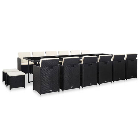 17 Piece Garden Dining Set with Cushions Poly Rattan Black