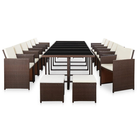 17 Piece Outdoor Dining Set with Cushions Poly Rattan Brown