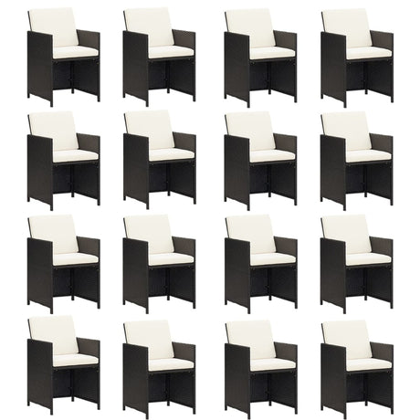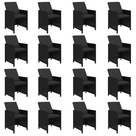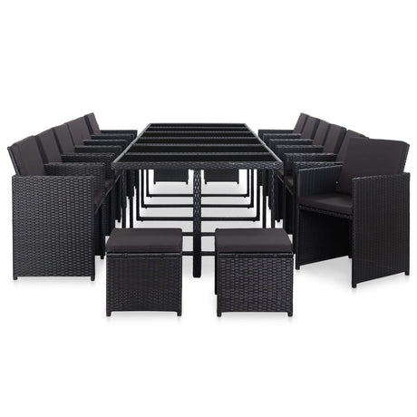 17 Piece Outdoor Dining Set with Cushions Poly Rattan Black