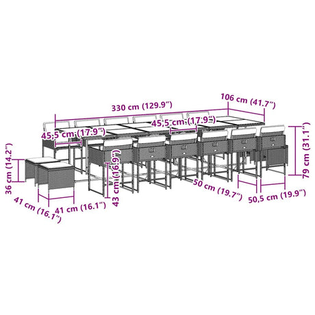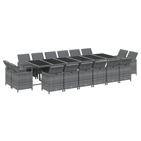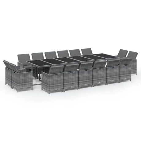 17 Piece Outdoor Dining Set with Cushions Poly Rattan Grey