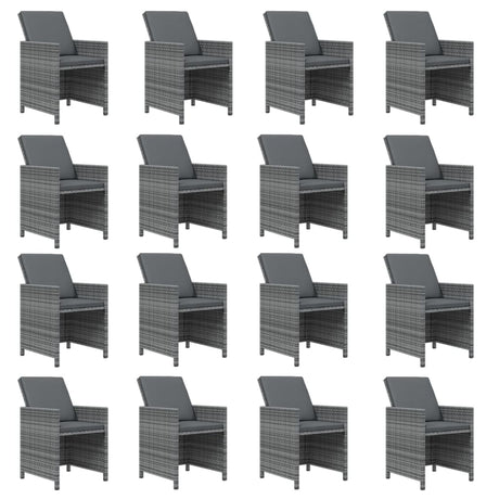 17 Piece Garden Dining Set with Cushions Poly Rattan Grey