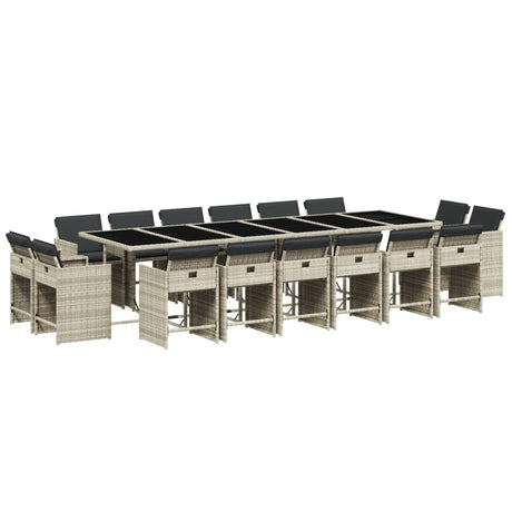 17 Piece Garden Dining Set with Cushions Light Grey Poly Rattan