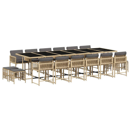 17 Piece Garden Dining Set with Cushions Mix Beige Poly Rattan