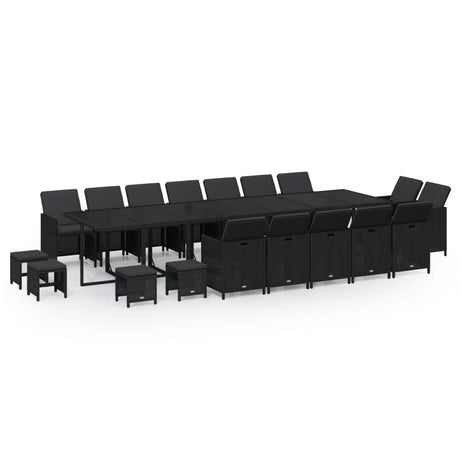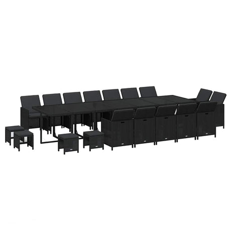 19 Piece Garden Dining Set with Cushions Poly Rattan Black