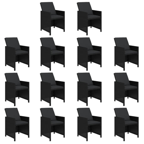 19 Piece Garden Dining Set with Cushions Black Poly Rattan