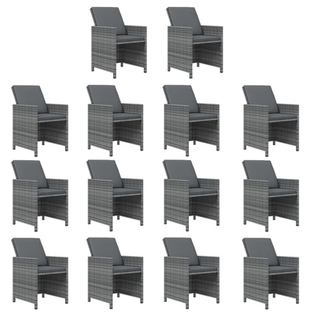 19 Piece Garden Dining Set with Cushions Poly Rattan Grey