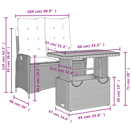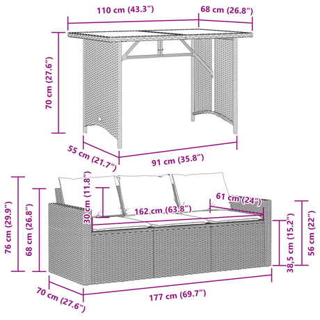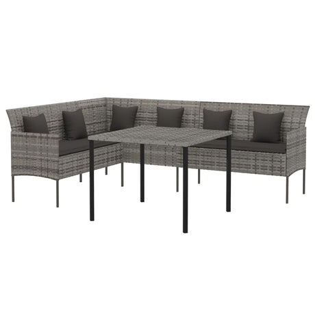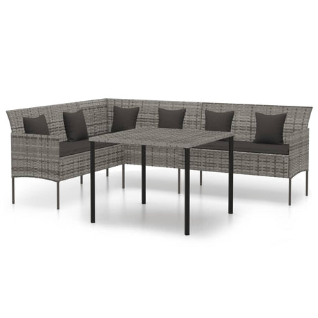 2 Piece Garden Dining Set with Cushions Grey Poly Rattan