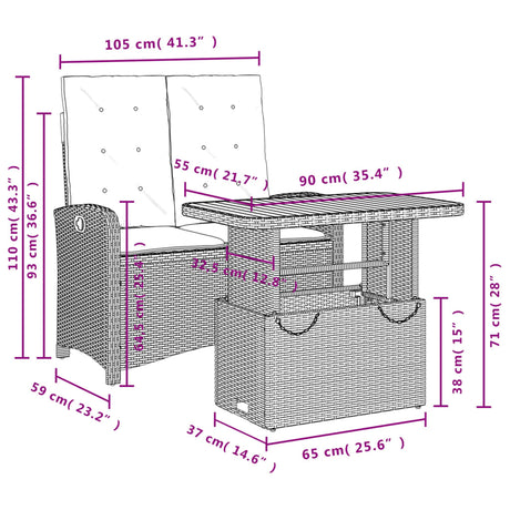 2 Piece Garden Dining Set with Cushions Black Poly Rattan