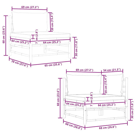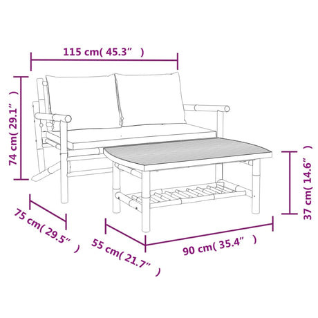 2 Piece Garden Lounge Set with Cream White Cushions Bamboo