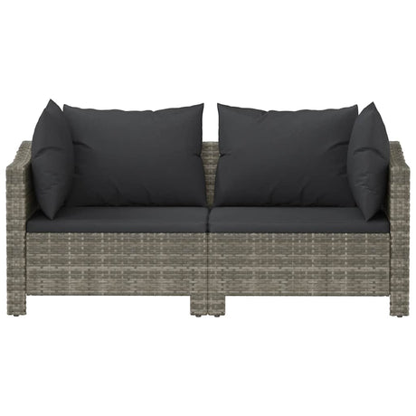 2 Piece Garden Lounge Set with Cushions Grey Poly Rattan