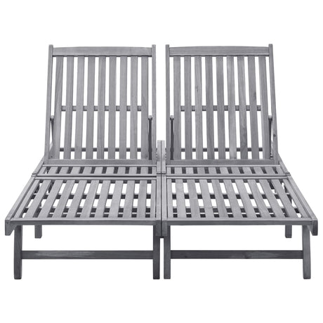 2-Person Garden Sun Lounger with Cushion Grey Solid Acacia Wood