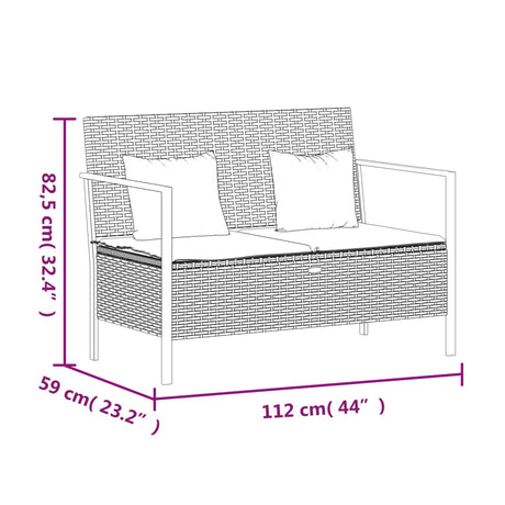 2-Seater Garden Bench with Cushions Black Poly Rattan