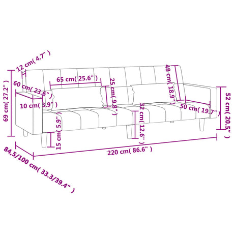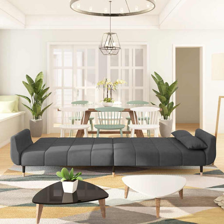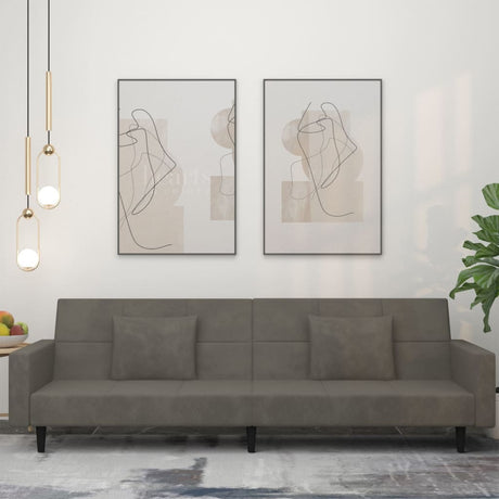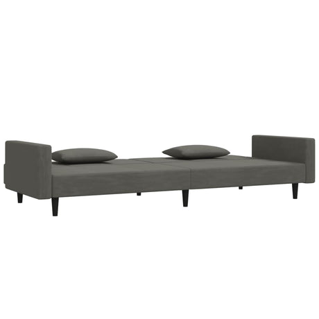 2-Seater Sofa Bed with Two Pillows Dark Grey Velvet