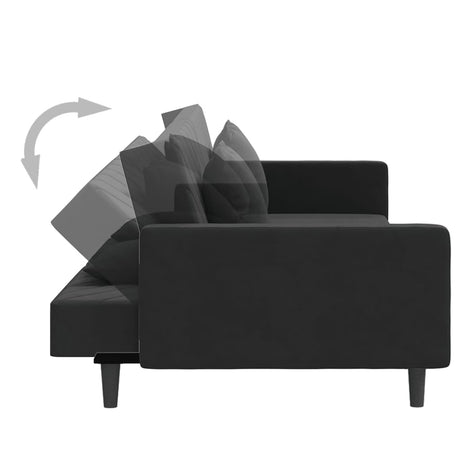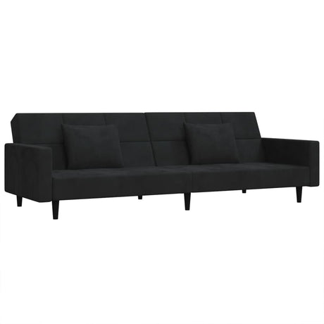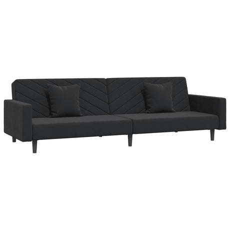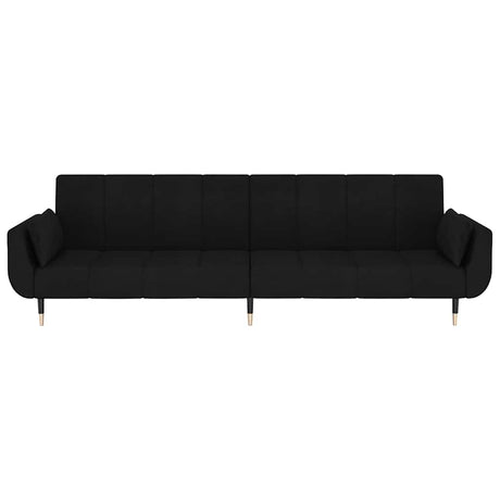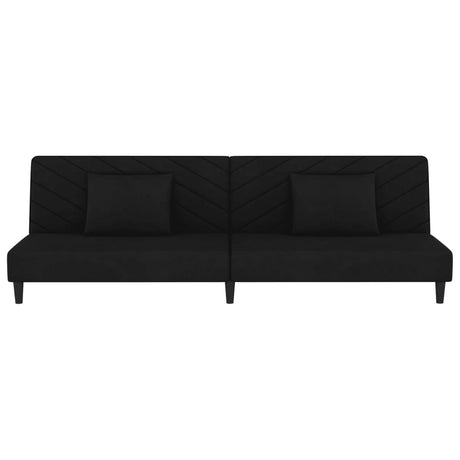 2-Seater Sofa Bed with Two Pillows Black Velvet