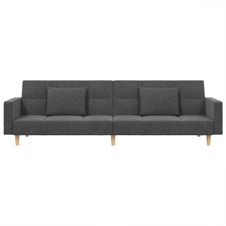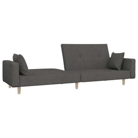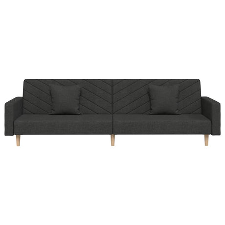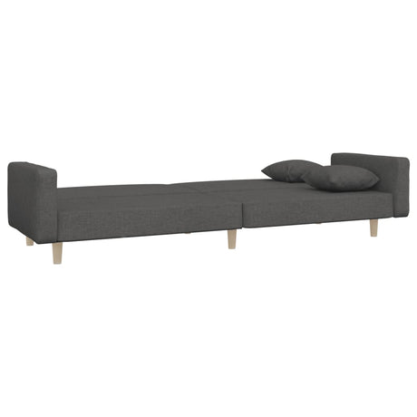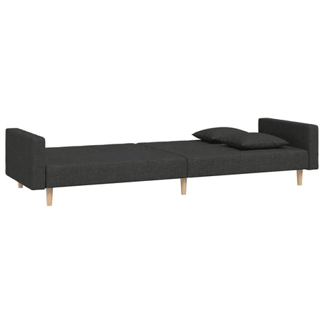 2-Seater Sofa Bed with Two Pillows Dark Grey Fabric