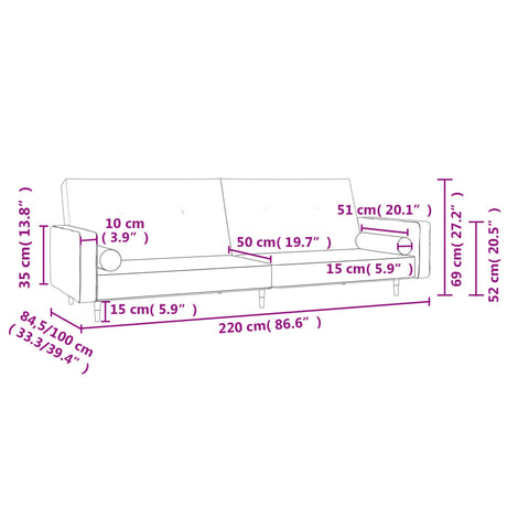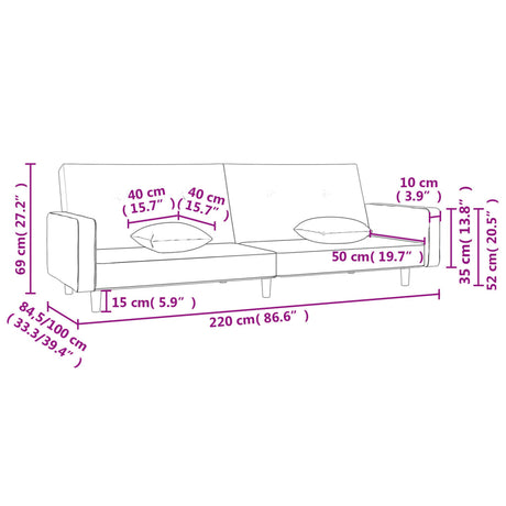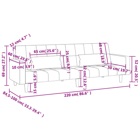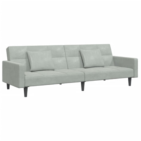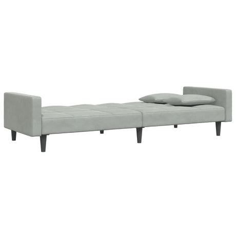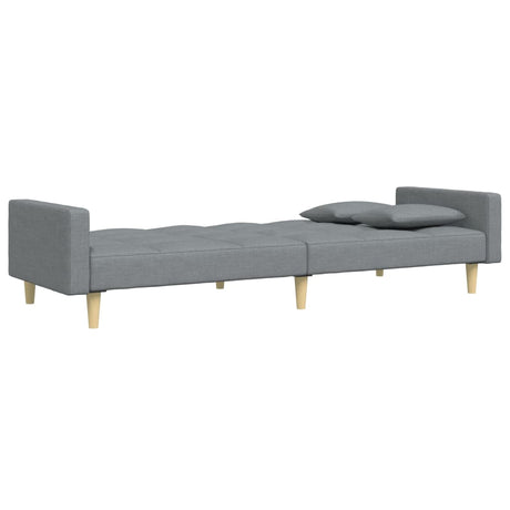 2-Seater Sofa Bed with Two Pillows Light Grey Fabric