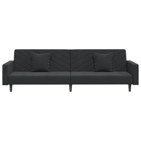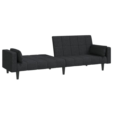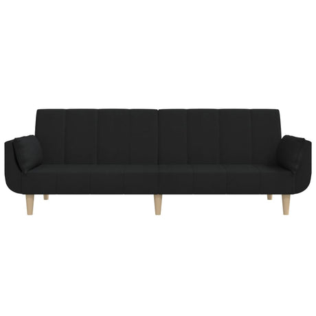 2-Seater Sofa Bed with Two Pillows Black Fabric