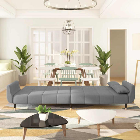 2-Seater Sofa Bed with Two Pillows Light Grey Fabric