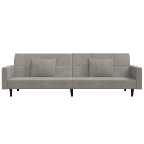 2-Seater Sofa Bed with Two Pillows Light Grey Velvet