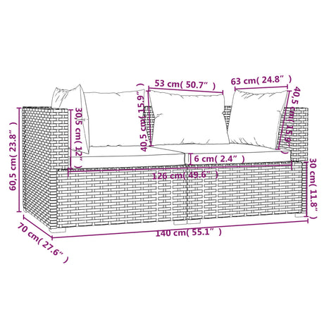 2-Seater Sofa with Cushions Grey Poly Rattan