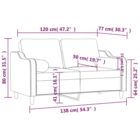 2-Seater Sofa with Throw Pillows Black 120 cm Fabric