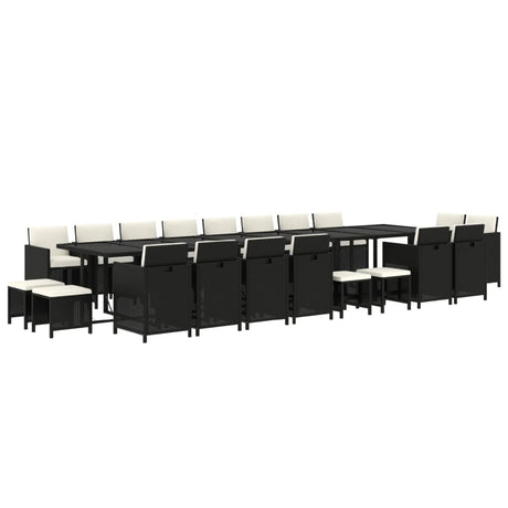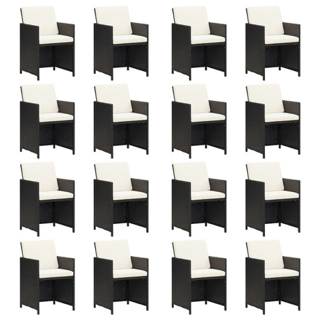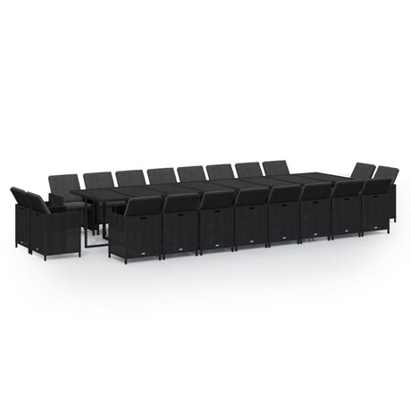 21 Piece Garden Dining Set with Cushions Black Poly Rattan