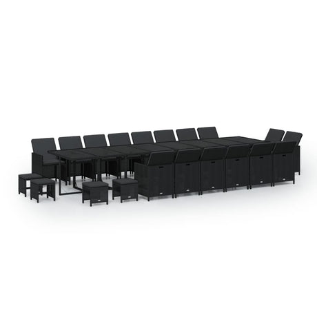 21 Piece Garden Dining Set with Cushions Black Poly Rattan