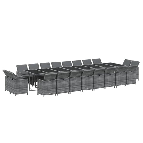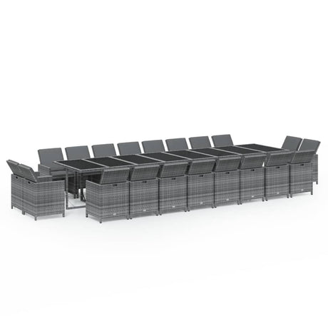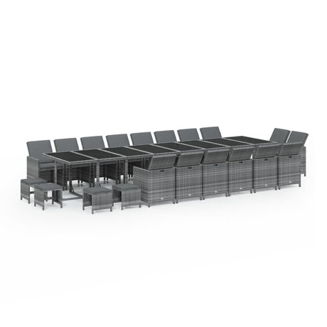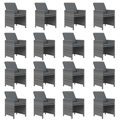 21 Piece Garden Dining Set with Cushions Grey Poly Rattan