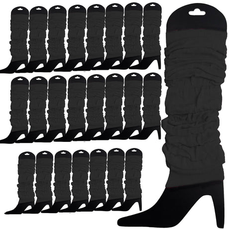 24 LEG WARMERS Knitted Womens Neon Party Knit Ankle Fluro Dance Costume 80s BULK - Black